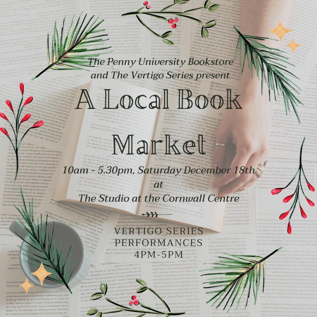 Join us on December 18 as we pass the torch with an event at The Studio, a new venue in the Cornwall Centre. There will be an all-day Local Book Market presented by Penny University Bookstore concluding with a festive Vertigo event at 4:00 pm.