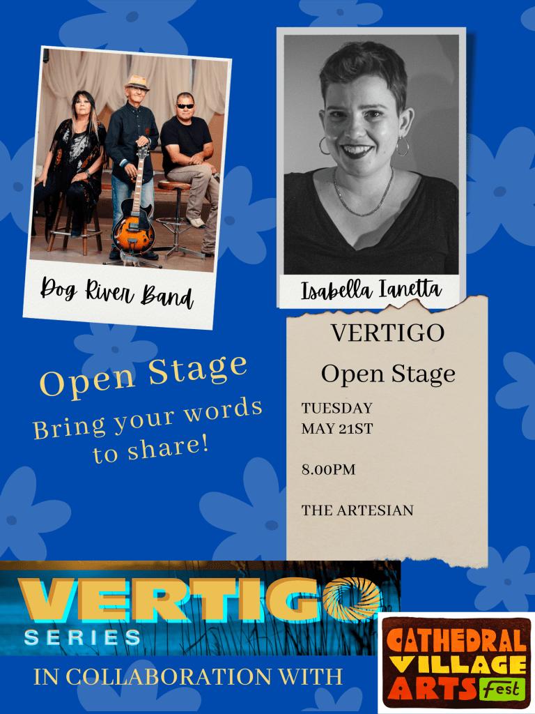 Open Stage presented by The Vertigo Series as part of Cathedral Village Arts Festival with support from The League of Canadian Poets, Saskatchewan Arts Board, SaskCulture and Saskatchewan Lotteries.